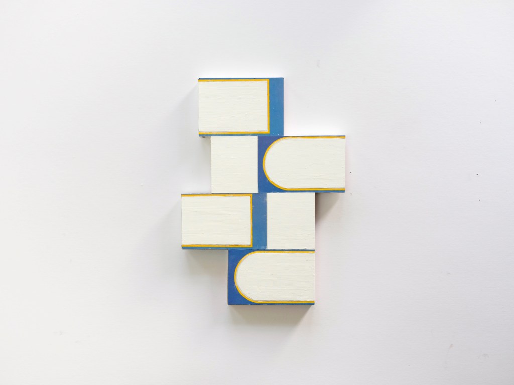 Record sleeve, decorators filler and acrylic paint on mount board frame
