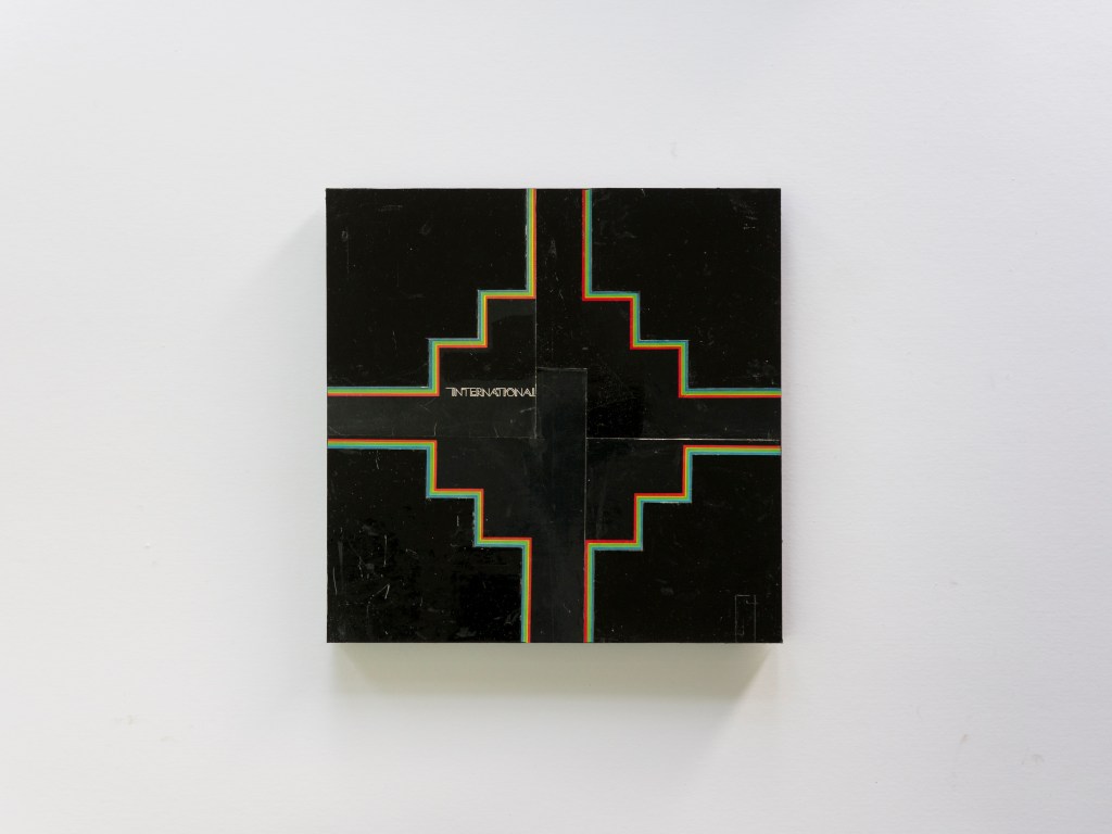 Record sleeve and decorators filler and acrylic paint on mount board frame